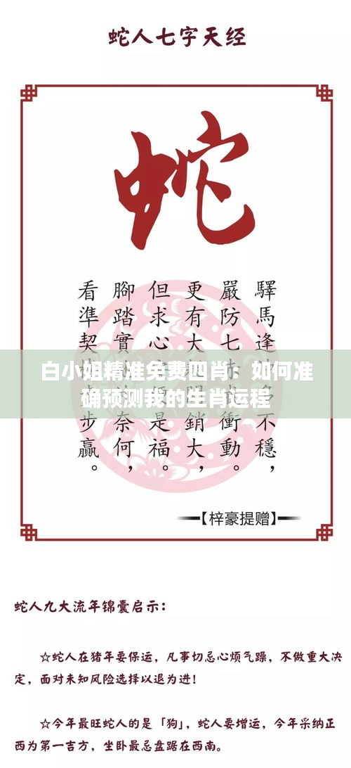 白小姐精準(zhǔn)免費(fèi)四肖:如何準(zhǔn)確預(yù)測我的生肖運(yùn)程