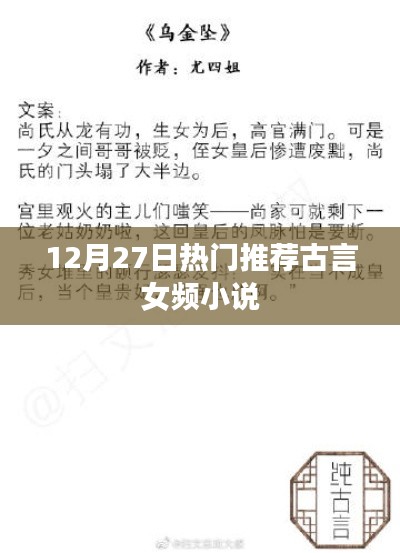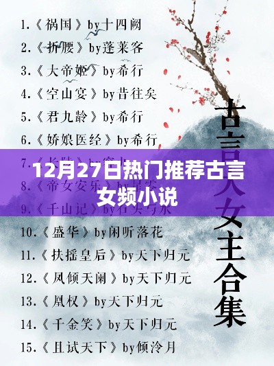 隨著時(shí)代的發(fā)展,古風(fēng)小說(shuō)在文學(xué)領(lǐng)域中的地位逐漸上升,尤其是古言女頻小說(shuō),受到了眾多讀者的喜愛(ài),本文將為大家推薦幾部在12月27日熱門的古言女頻小說(shuō),讓我們一起跟隨文字,走進(jìn)那悠遠(yuǎn)的古代世界。