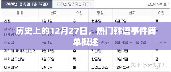 每年的12月27日,在歷史上都留下了深刻的印記,這一天,無論是在韓國還是全球范圍內,都發(fā)生過一些值得紀念的事件,本文將為您簡要介紹歷史上的12月27日發(fā)生的熱門韓語事件。