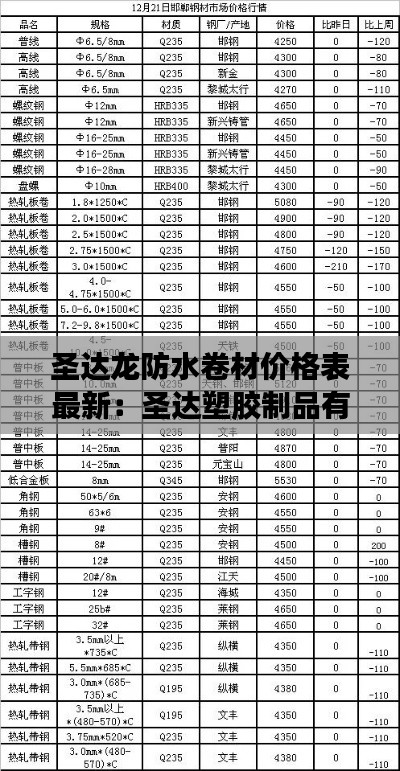 隨著建筑行業(yè)的不斷發(fā)展,防水材料在建筑中的應(yīng)用越來(lái)越廣泛。圣達(dá)龍防水卷材作為市場(chǎng)上知名的品牌,其產(chǎn)品質(zhì)量和性能得到了廣大用戶的認(rèn)可。本文將為您詳細(xì)介紹圣達(dá)龍防水卷材的最新價(jià)格表,幫助您了解產(chǎn)品的價(jià)格信息。
