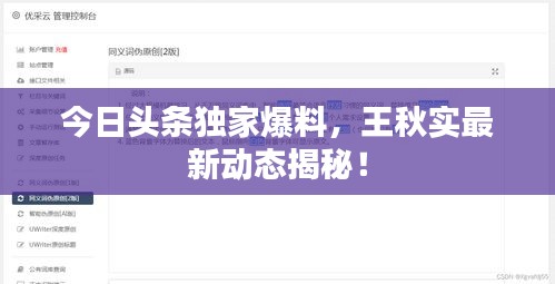 今日頭條獨家爆料,王秋實最新動態(tài)揭秘!