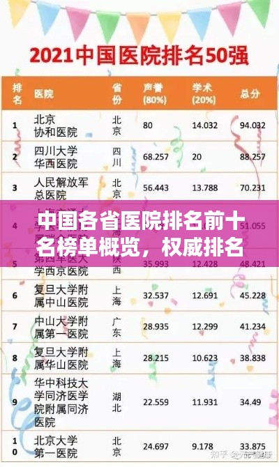 中國(guó)各省醫(yī)院排名前十名榜單概覽,權(quán)威排名一網(wǎng)打盡!