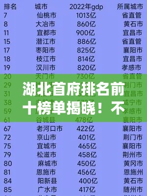 根據(jù)最新數(shù)據(jù),武漢在眾多城市中脫穎而出,成為湖北首府排名前十名的佼佼者,這些排名反映了武漢在經(jīng)濟(jì)、文化、教育、科技等領(lǐng)域的綜合實(shí)力。