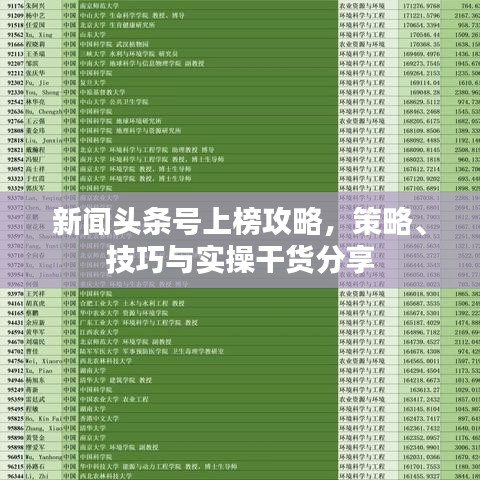 隨著移動互聯(lián)網(wǎng)的普及,新聞頭條號已成為信息傳播的重要渠道之一,越來越多的個人和組織希望通過新聞頭條號吸引關(guān)注,擴大影響力,本文將介紹新聞頭條號的上榜策略、技巧及最佳實踐,幫助讀者更好地利用這一平臺。